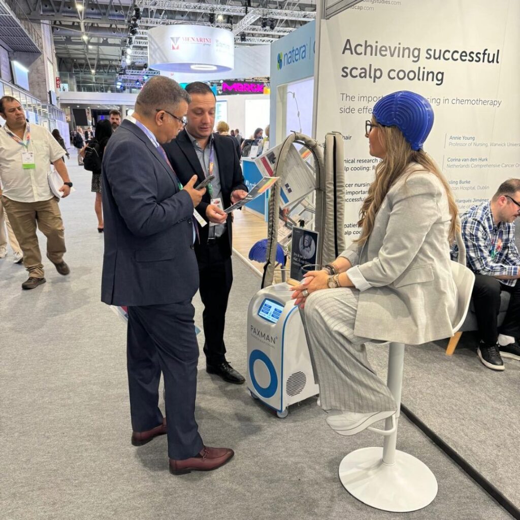 Last week, the ESMO Congress 2024 & EONS17 wrapped up for another year. Hosted in Barcelona, Spain, this European Oncology congress invited professionals in all areas of oncology and cancer care to exchange knowledge, debate and discuss with the overall goal of improving treatment options for patients. Our team were delighted to be in attendance and manning the Paxman exhibition stand, where we discussed and presented the Paxman Scalp Cooling System and how it helps to prevent chemotherapy-induced alopecia.