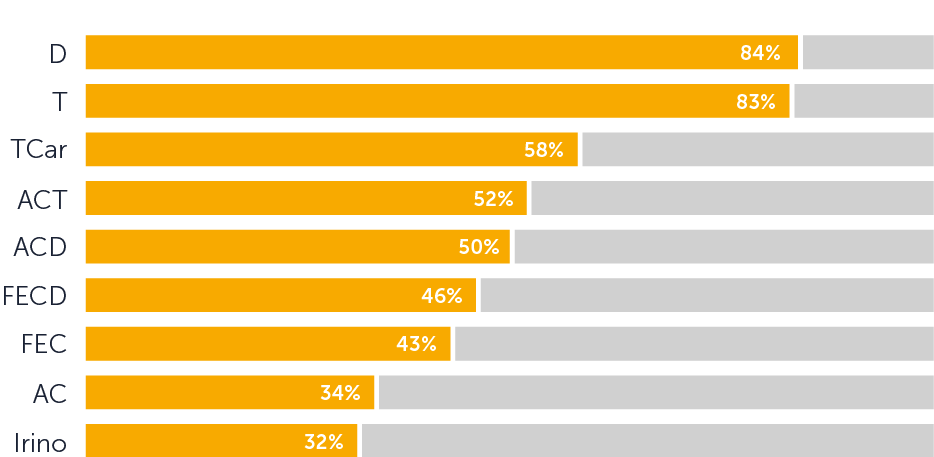Taxane regimens showed the highest efficacy, with 78% of patients not needing a head covering, compared to 40% for anthracyclines and 45% for anthracycline/taxane combinations.