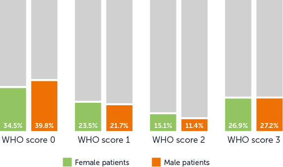 Severity of hair loss in male and female patients